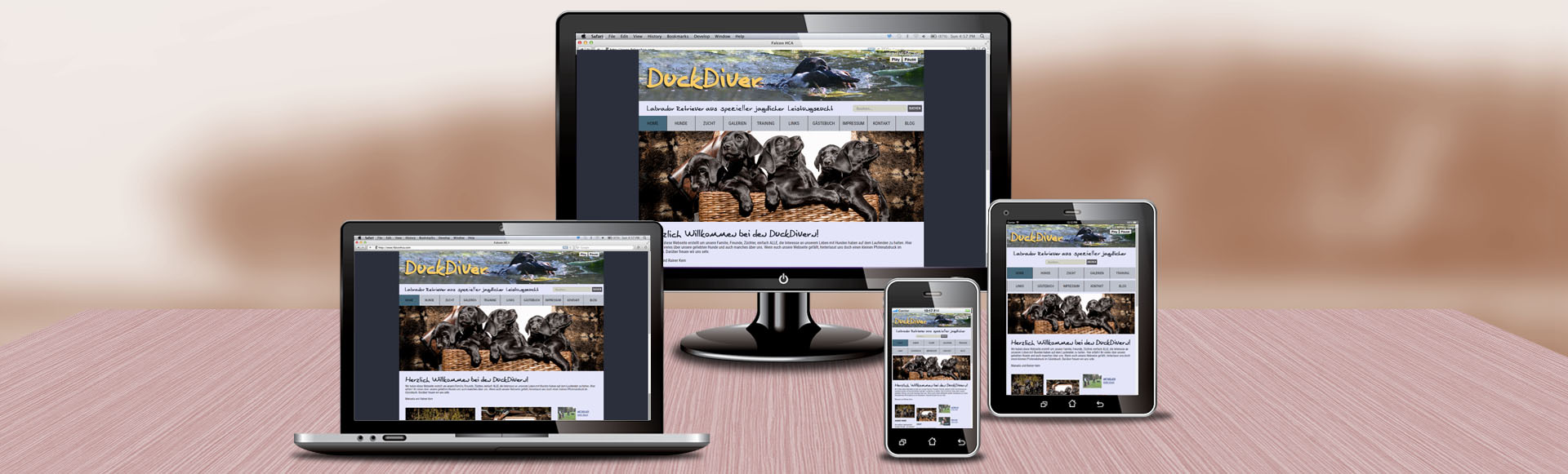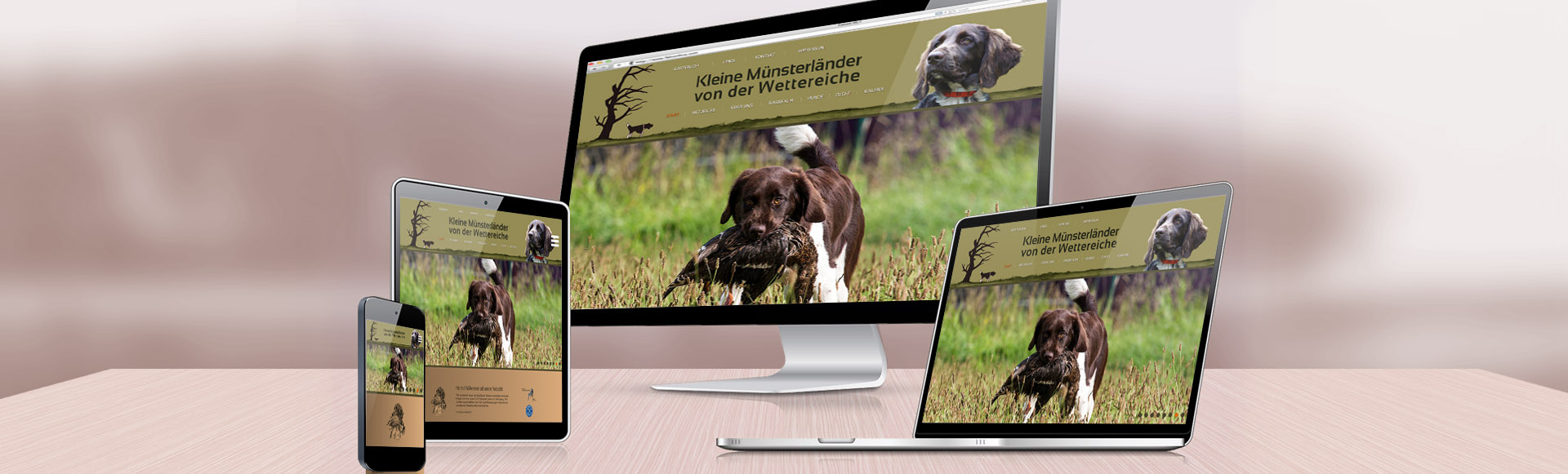 Das ist der Grund, dass wir uns auf die professionelle Erstellung von Webseiten für Hundefreunde, Hundezüchter, Hundevereine und kommerzielle Anbieter wie Hundeschulen, Onlineshops für Hunde etc. spezialisiert haben. Unser Team besteht aus 15 kompetenten, sehr gut ausgebildeten Menschen wie Dipl. Mediendesigner, Dipl. Grafikdesignern und Dipl.-Ing. für Programmierung. Insgesamt kommen auf diese 15 Menschen 7 Hunde. Unsere Hunde werden zum größten Teil jagdlich oder im Gebrauchshundesport (IPO) geführt.